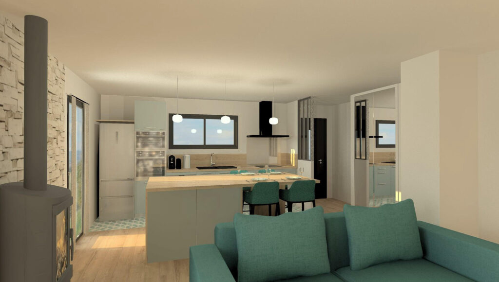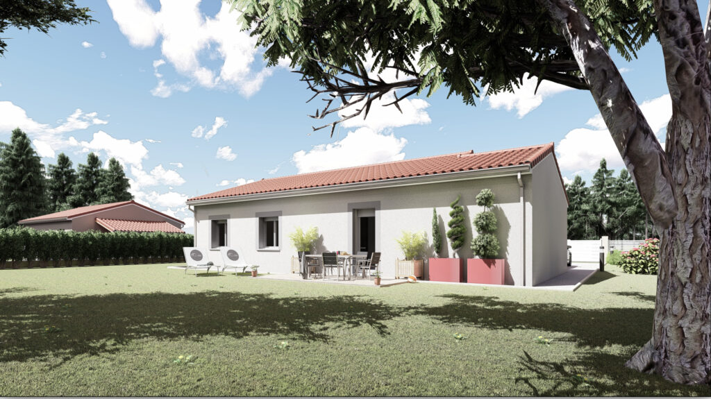 Pour le reste de la construction, vous bénéficiez de menuiseries de marques française avec volet roulant électrique, d’une pompe à chaleur assurant le chauffage et la climatisation.