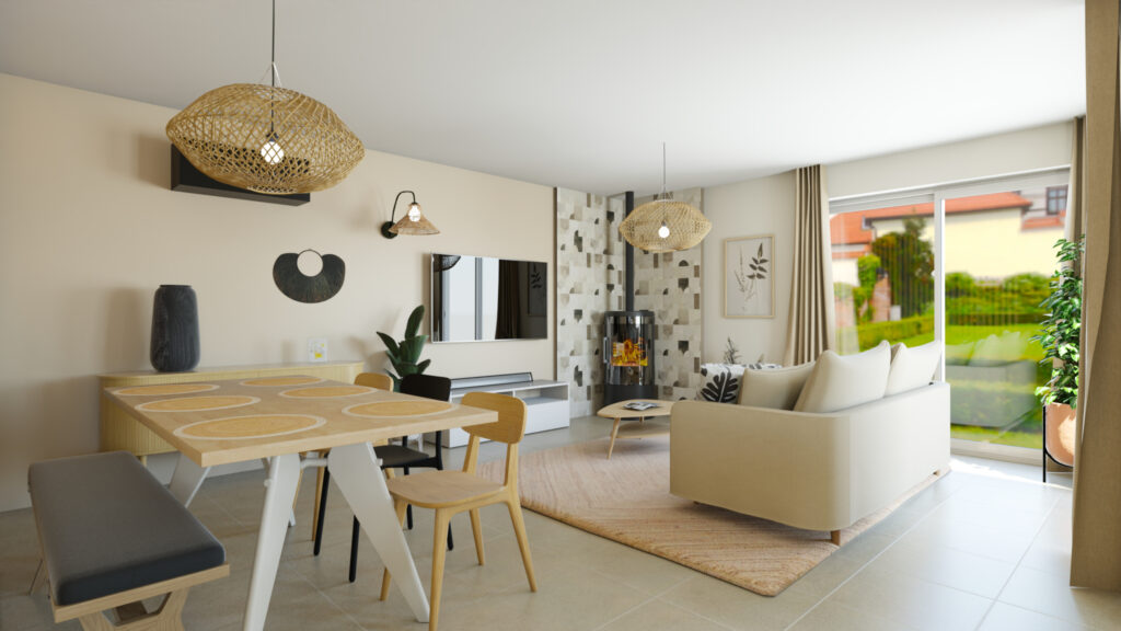 Maître d’oeuvre depuis 2005, la société SOVALFON vous propose votre projet de construction de 90m2 habitable + simple garage sur la commune de PERIGNAT SUR ALLIER, sur un joli terrain de 800m2, situé dans un environnement très calme avec belle exposition et magnifique vue dégagée. Votre maison est composée:- D’une belle pièce de vie donnant sur une grande terrasse sur pilotis de 43m2 , d’un cellier, d’un wc séparé, de 3 chambres, d’une salle de bain, ainsi qu’un garage simple. Les matériaux sont les suivants:- Maçonnerie en parpaing, toitures 2 pans en tuile béton rouge, menuiseries PVC et aluminium de couleur blanc RAL9016, ainsi que motorisation sur l’ensemble de la maison en coffre TITAN intégré (porte garage sectionnelle motorisée), chauffage par PAC air/air (norme RE2020) et ballon thermodynamique (basse consommation), façade en finition gratée, V.R.D (branchement de la maison au coffret), ect…. Prix incluant :- Terrain, frais de notaire et coût de la maison en finition prêt à décorer (hors peinture mur et cuisine). Ce projet est modifiable à l’infini (taille des pièces, surface globale, etc … ) Pour toutes informations contactez M.TESI JULIEN au 06.60.09.99.00 – Agence situé à Aubière (secteur La Pardieu) et d’Issoire. * Les visuels photo réalistes ont été réalisés par Delphine de la société « Etamine Décoration »Architecte d’intérieur et décoratrice, elle vous accompagne dans la conception de tous vos projets d’intérieur. Contact au 06 87 06 04 83 ou https://www.etaminedecoration.fr/