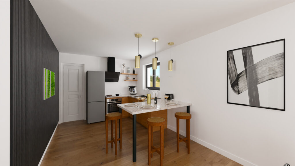 Maître d’oeuvre depuis 2005, la société SOVALFON vous propose votre projet de construction de 116m2 habitable + double garage sur la commune d’ISSOIRE, sur un joli terrain plat de 650m2, situé dans un environnement très calme avec belle exposition. Votre maison est composée:- D’une belle pièce de vie, d’un cellier, d’un wc séparé, de 4 chambres dont une suite parentale, d’une autre salle de bain, ainsi qu’un double garage.. Les matériaux sont les suivants:- Maçonnerie en parpaing, toitures 4 pans en tuile terre cuite de couleur rouge, menuiseries PVC et aluminium de couleur gris antharcite RAL7016, ainsi que motorisation sur l’ensemble de la maison en coffre TITAN intégré (porte garage sectionnelle motorisée), chauffage par PAC air/air (norme RE2020) et ballon thermodynamique (basse consommation), façade en finition gratée, V.R.D (branchement de la maison au coffret), ect…. Prix incluant :- Terrain, frais de notaire et coût de la maison en finition prêt à décorer (hors peinture mur et cuisine). Ce projet est modifiable à l’infini (taille des pièces, surface globale, etc … ) Pour toutes informations contactez M.TESI JULIEN au 06.60.09.99.00 – Agence situé à Aubière (secteur La Pardieu) et d’Issoire. * Les visuels photo réalistes ont été réalisés par Delphine de la société « Etamine Décoration »Architecte d’intérieur et décoratrice, elle vous accompagne dans la conception de tous vos projets d’intérieur. Contact au 06 87 06 04 83 ou https://www.etaminedecoration.fr/