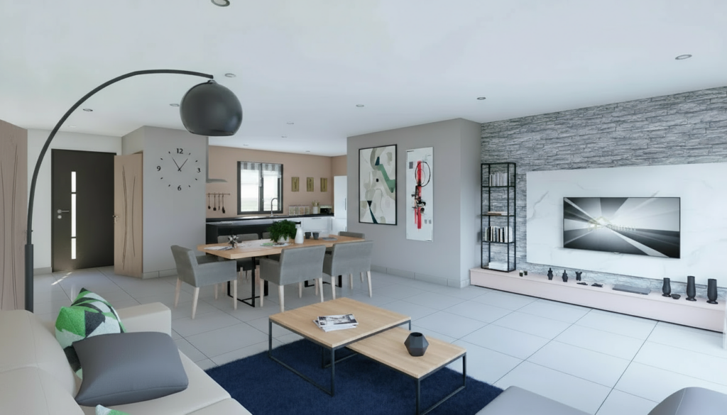 – Une entrée ouvrant sur un bel espace de vie de 50 m2 avec salon cuisine ouverte