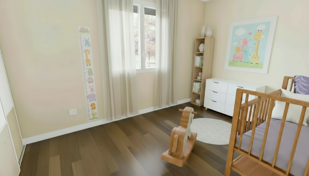 – Non compris dans le prix : préparation et peintures murs et plafonds, parquet chambres, cuisine et aménagements extérieurs.